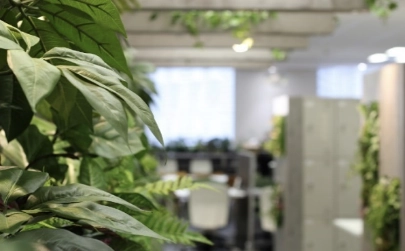 オフィス内には緑のインテリアも設置し、